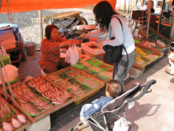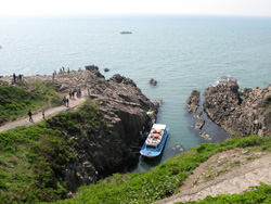 有名観光地だけあって駐車場はどこも満車、しかも狭い。 と思ったら、みんな土産物店の駐車場。 お約束の呼込みのオヤジが。 500円也の市営駐車場は、大型バスでも駐車し放題のガラ空き。 躊躇せずそちらへ。 イカ焼きを頬張りながら歩いて見物する。