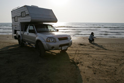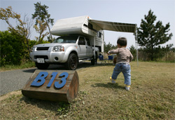 鉢ヶ崎オートキャンプ場は、電源付きサイト3500円と良心的料金なのに空いている。 海水浴場が近く、夏は混むのだろうけど。 nyapotaを放しても迷惑が掛からず、ご機嫌で歩き回るのを放っておく。(笑)