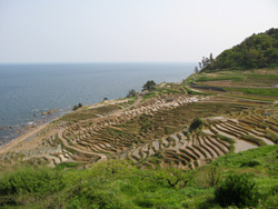 キャンプ場への途中、千枚田を見物。 せっかくのキャンプ場ではのんびりしたいので、コンビニで食材を仕入れてチェックイン時間11:00過ぎには入場する。