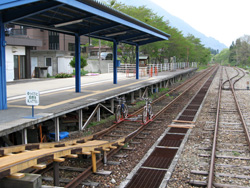 細入の道の駅で「昼食&飛騨牛串焼き休憩」、スーパー隣接の神岡の道の駅で「食料買出し休憩」の後、神岡鉄道奥飛騨温泉口駅跡の「あすなろ」へ。 nyamoは「マンデリン」、nyaponは「グァテマラ」、nyapotaは「お子様ミルク」を注文。(笑) 美味くて安い自家焙煎コーヒーを味わって外に出てみると、レールマウンテンバイク「ガッタン・ゴー」の準備中。 明日から営業らしい。 鉱山前駅まで往復5.6kmのレール上のサイクリングは楽しそうだが、身長制限がありnyapota連れでは当分無理なよう。