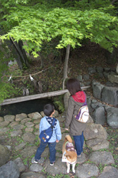 今日は、歴女nyamoの希望で史跡めぐり。 そもそも泊まった道の駅は、源義経 元服の地。(但し諸説あり。) ゆずのお散歩を兼ねて、牛若丸が前髪を落飾して元服したという池を見に行った後、源氏再興と武運長久を祈願したという神社にも参拝。