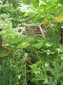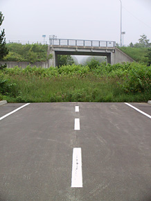 国道を走っているだけで見つかる、はっきりとした遺構。 やはりその下には、夏草に覆われながらも「いかにも」な空間が続いています。