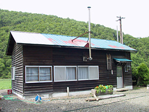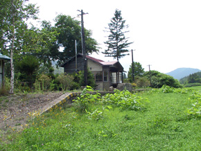 道路からは見えませんでしたが、工事資材置き場に入れて頂いて発見。 西興部駅跡は、公営の宿泊施設になっていました。