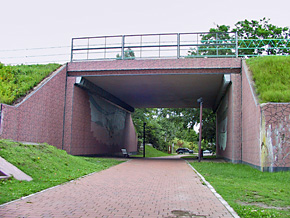 このあたりの線路跡は、遊歩道と公園になっています。 そう思ってみると遊歩道はそれらしいRを描いているようですが・・・。