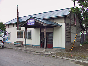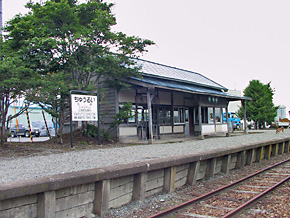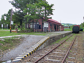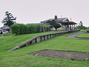 駅舎はバスの待合室として使われています。 ホームも残っており、構内は公園に。 付近には農業倉庫があり、農産品が続々と貨車に積み込まれて蒸機牽引の貨物列車で出荷されていった光景が目に浮かぶようです。