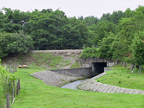 きれいに築堤が残っているようですが、付近は牧場になっており、ひつじの皆さんが見張っているのでこれ以上近付けません。