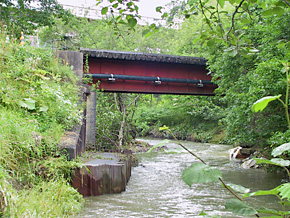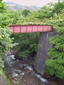このあたりは旧線跡が遊歩道になっており、この橋も歩いて渡れます。 すぐ奥には平行して新線が走っています。