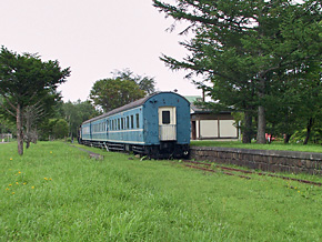 ホームと線路が残り、線路上には9600型蒸機と20系客車が置かれ、列車ホテルとして利用されているようです。