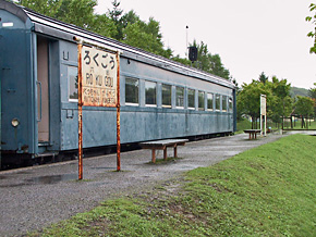 ホームが残り客車が置かれ、公園になっています。 付近はすっかり整備されて廃線跡の趣はありません。