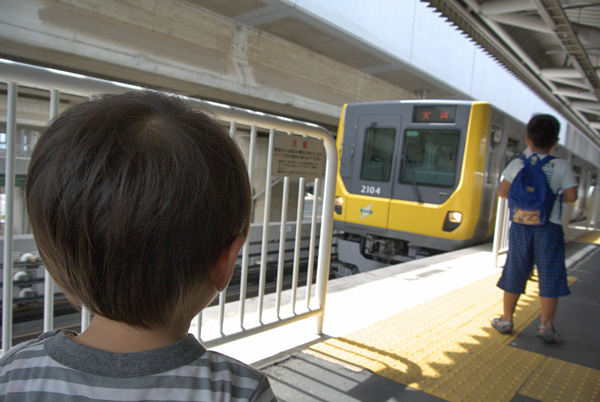 しんかんせんくんのリュック持参のnyamotaと、本物のしんかんせんくん。 そろそろ歩き疲れて、ベビーカーでグズグズ・・・。